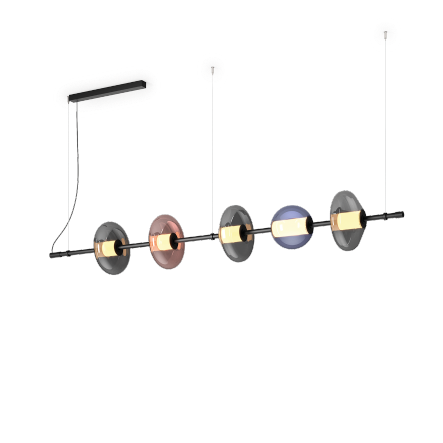 Dekoracyjne i konfigurowalne oprawy wykorzystujące motyw "koralików" w formie szklanych kloszy